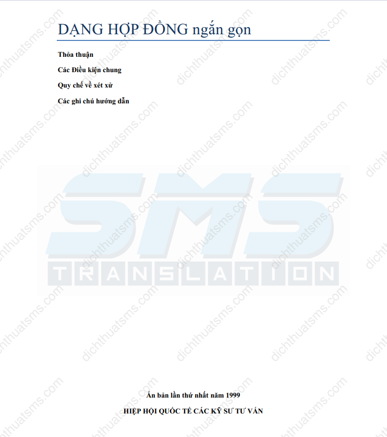 Dịch Thuật SMS xin giới thiệu bản dịch toàn bộ cuốn FIDIC Green Book 1st Edition 1999, còn gọi là Sách xanh/Sách xanh lá/Cuốn màu xanh lục, ấn bản lần thứ 1 năm 1999 của Hiệp hội quốc tế các kỹ sư tư vấn FIDIC.